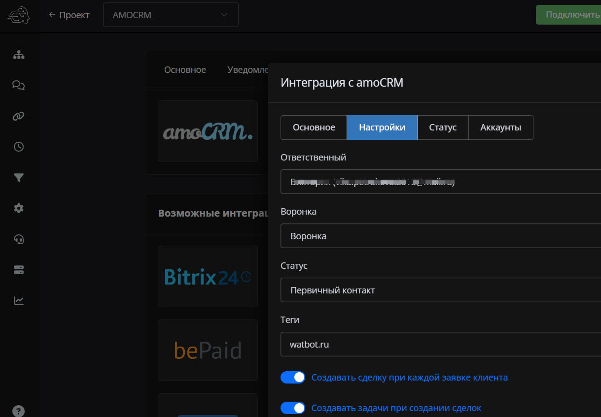 Видео-инструкция ИНТЕГРАЦИЯ WATBOT И AMOCRM: