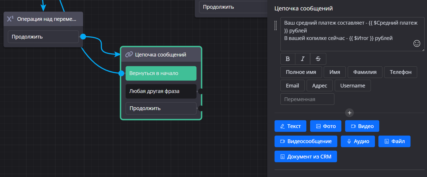 Добавьте блок "Операция над переменной" от кнопки "Средний платёж".