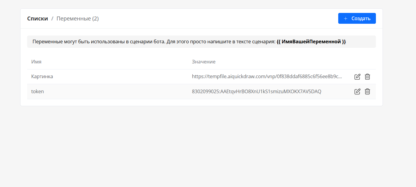 Нажмите «+ Создать» (или «Добавить переменную»).