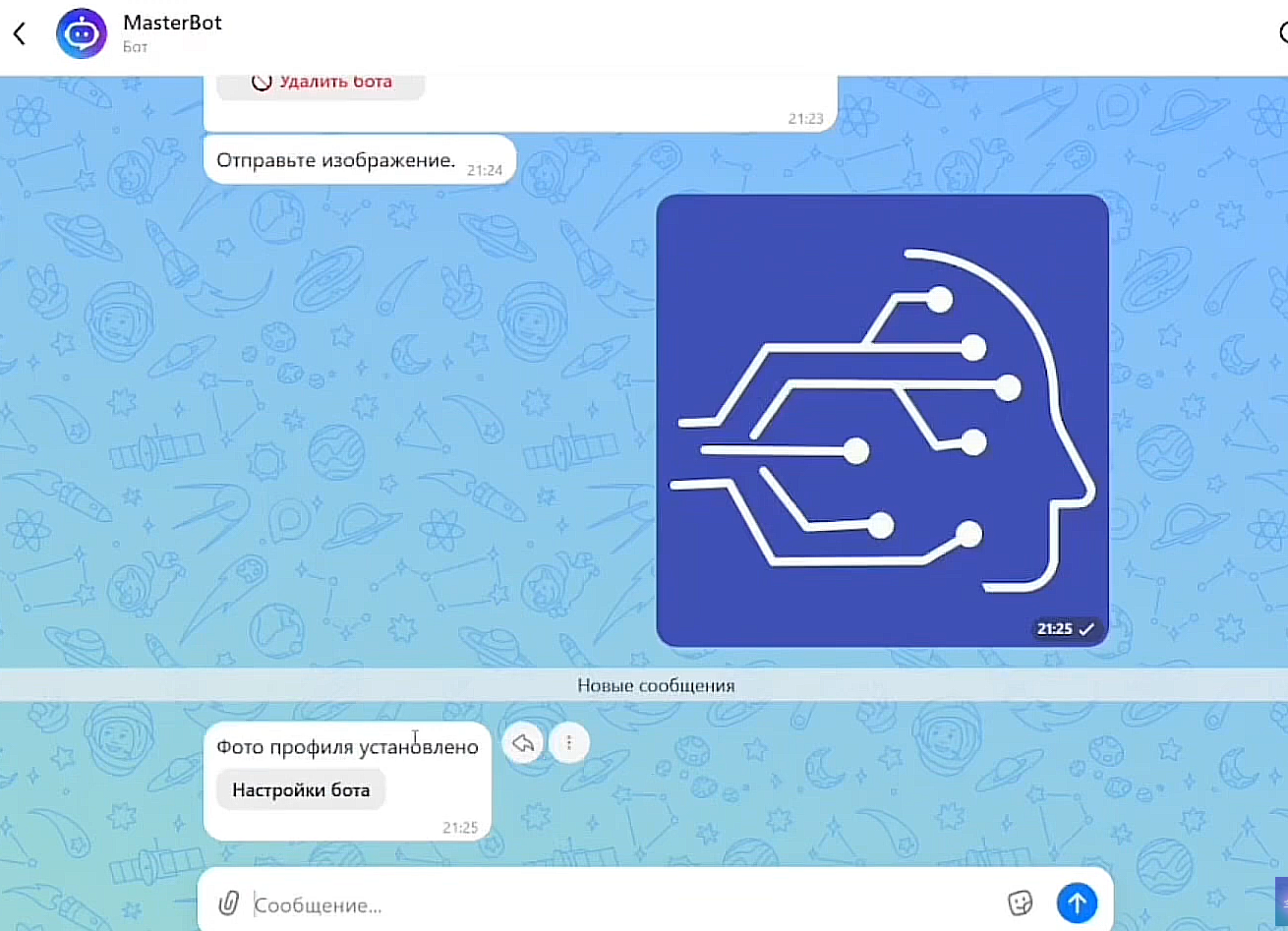 Отправьте эту команду в чат с вашим ботом.