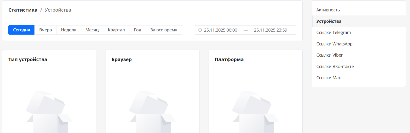 • Сегодня — данные за текущий день