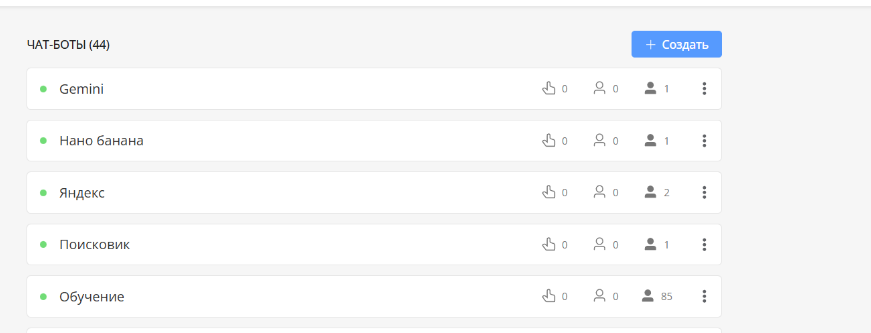 Выбор чат-бота — выберите, какого бота хотите превратить в шаблон.