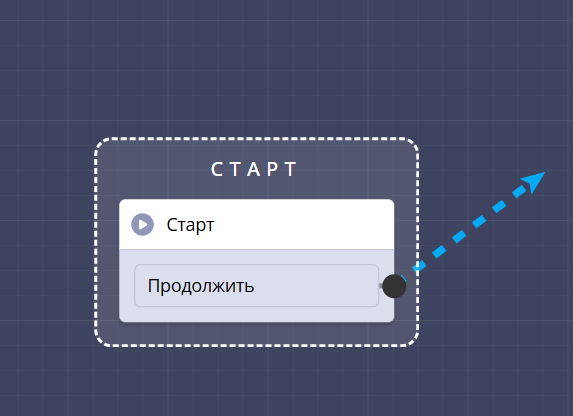 После создания проекта у вас уже есть стартовый блок — это точка входа в сценарий. Отсюда начинается любой диалог с пользователем.