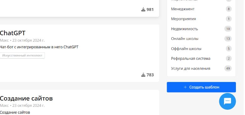 Интересная функция — вы можете создавать шаблоны из своих ботов и делиться ими.